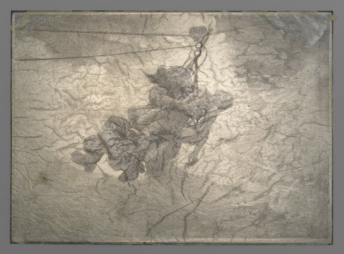 In 1941 the Museum acquired this as one of five Homer printing plates from an important group of eight made 1882–89. The titles of plates now at the Met are The Life Line, Eight Bells, Mending the Tears, Perils of the Sea, and Fly Fishing, Saranac Lake. Homer worked on these plates after returning to the United States in 1882 from two years in England. While initially self-taught as an etcher, the artist worked closely with the New York printer George W. H. Ritchie in the multi-stepped etching process–with Ritchie proofing and editioning all lifetime impressions. Ritchie's assistant, Charles S. White, eventually purchased Ritchie's business and stock, including the five plates, selling them to the Met in 1941. At that time, Print Department curator William M. Ivins, Jr. asked White to print sets of restrikes from the plates. Generally, he wiped the surfaces of the plates clean to produce drier and more linear images than richly toned lifetime impressions. Eight restrikes were added to the collection to allow for comparative study (41.20.1-.8) and others would later be offered for sale through the Museum's Mezzanine Gallery to raise acquisition funds.