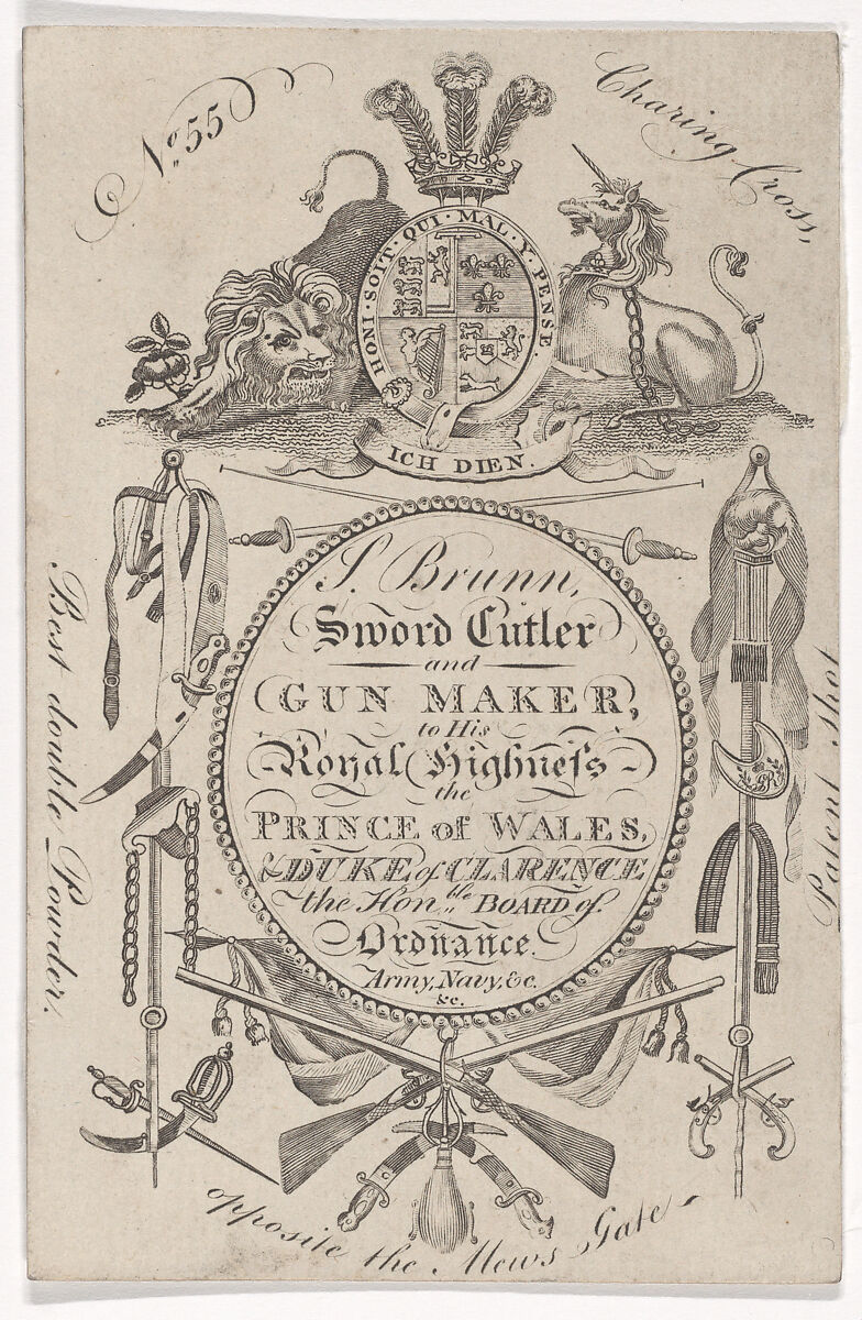 - Title: Trade Card of the Gunmaker Samuel Brunn (active 1795–1820)
