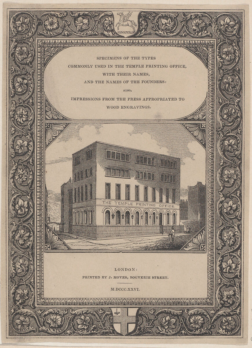 Trade Card for the Temple Printing Office, Printers and Wood Engravers