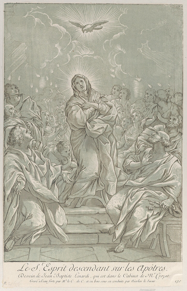 - Title: The Pentecost, with the Virgin standing at center, the Holy Spirit above, and Apostles on both sides