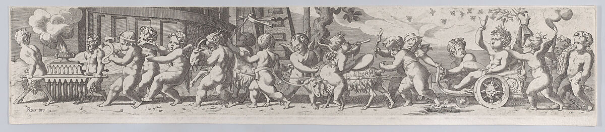 - Title: The triumph of the infant Bacchus, who is being pulled along in a chariot by putti playing musical instruments