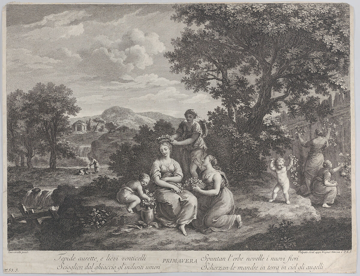 - Title: Primavera, a group of women collecting flowers and making crowns from them