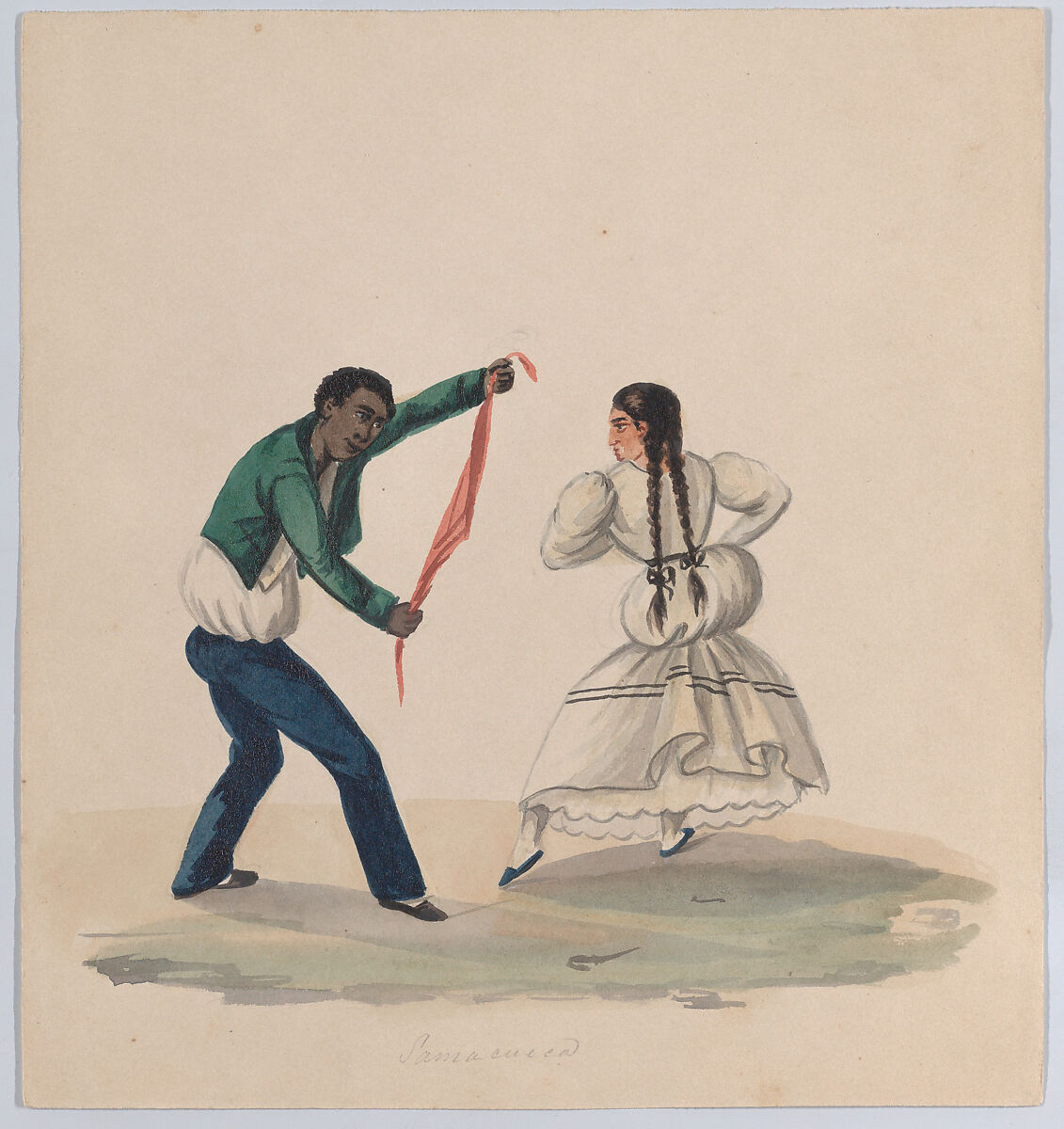 - Title: A man and woman dancing the Zamacueca, from a group of drawings depicting Peruvian dress