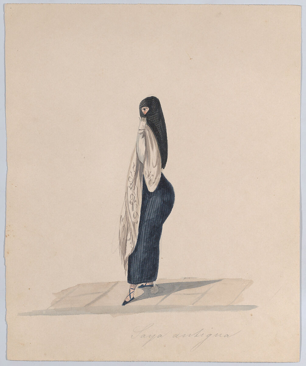 - Title: A woman wearing the saya standing in profile, from a group of drawings depicting Peruvian dress