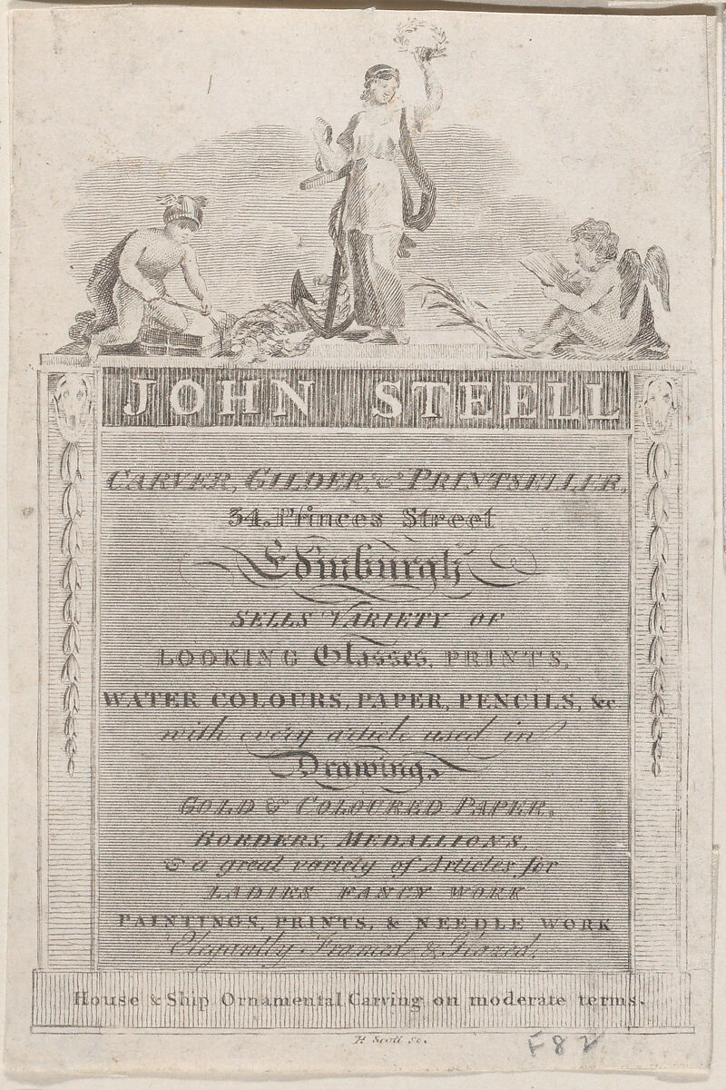 Trade Card for John Steell, Carver, Gilder, and Printseller