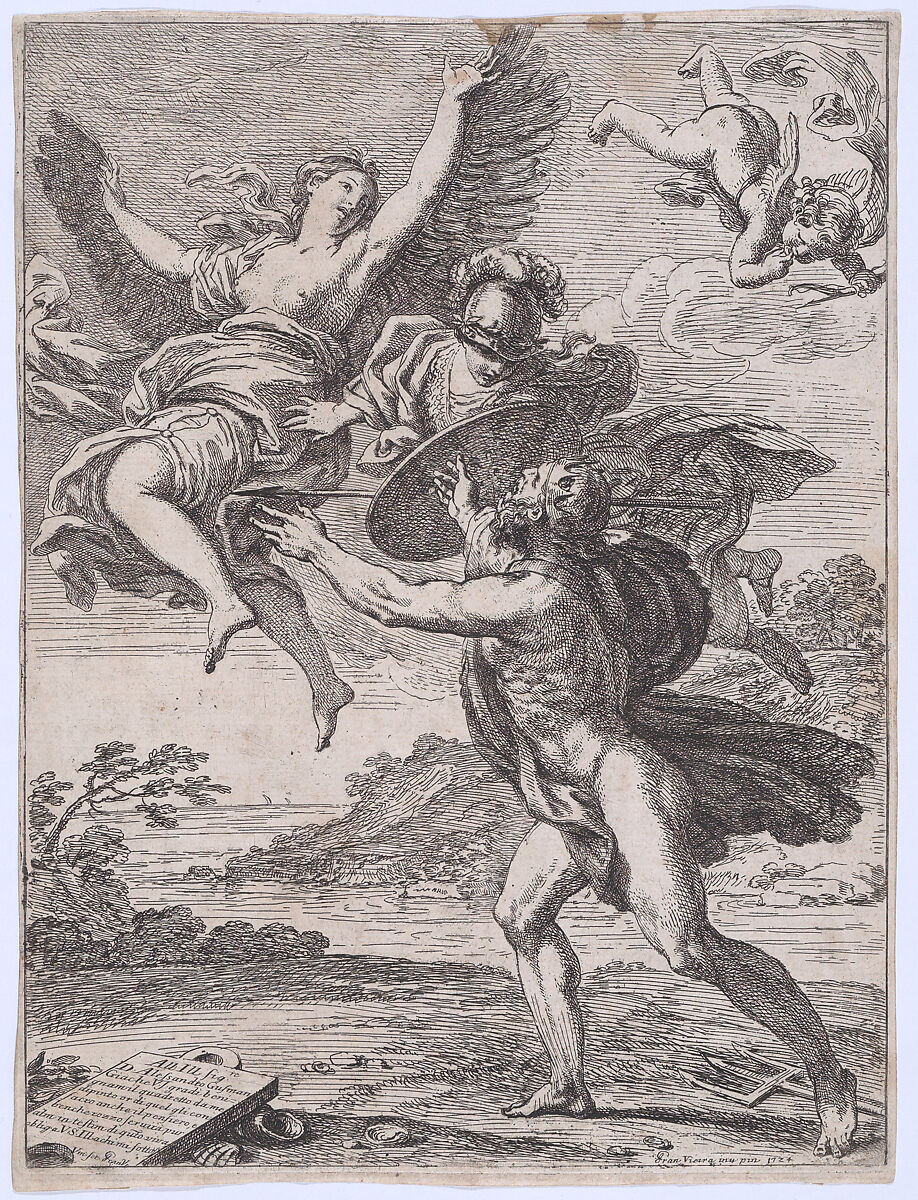 - Title: Neptune pursuing Coronis; Minerva interposes herself and turns Coronis into a crow