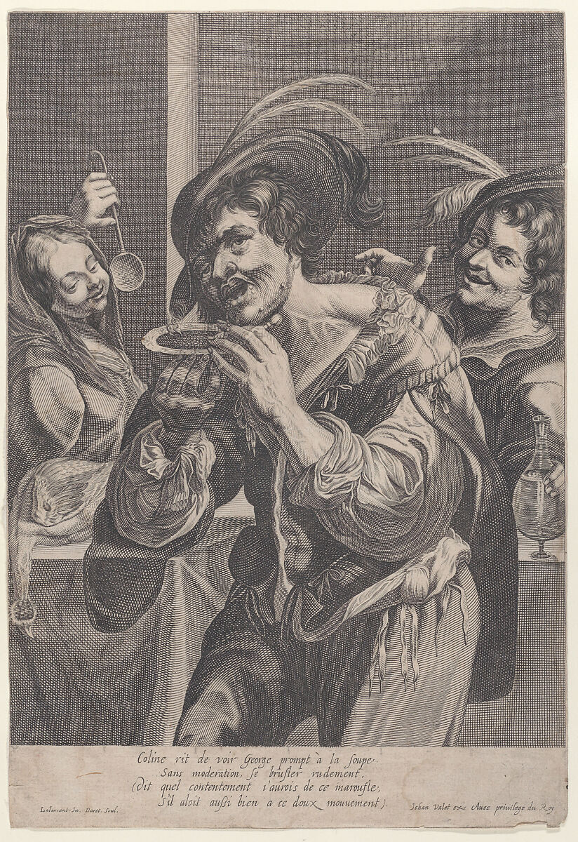 - Title: Man drinking soup while two people watch him