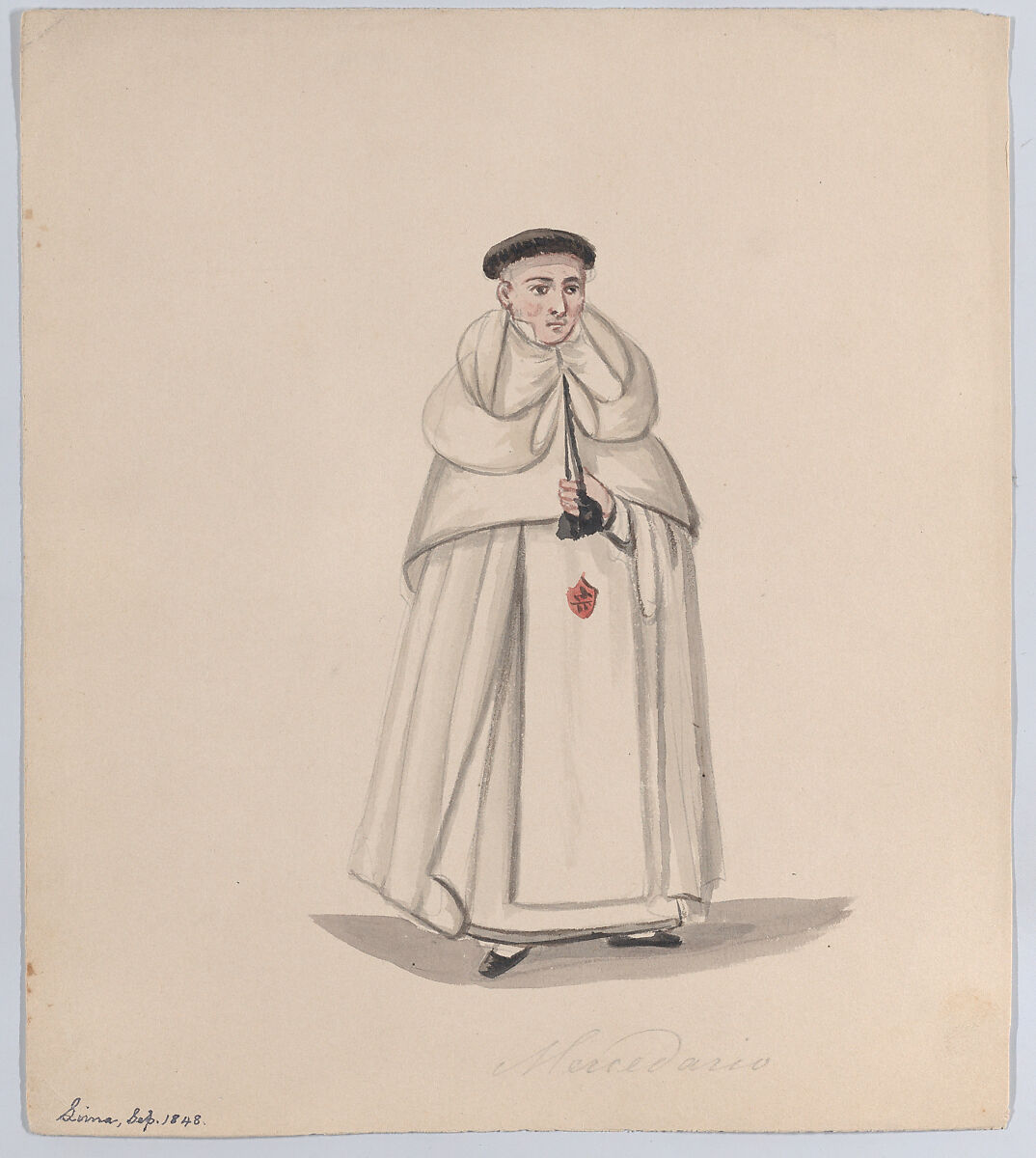 - Title: A priest from the Mercederian order (Order of Our Lady of Mercy), from a group of drawings depicting Peruvian dress