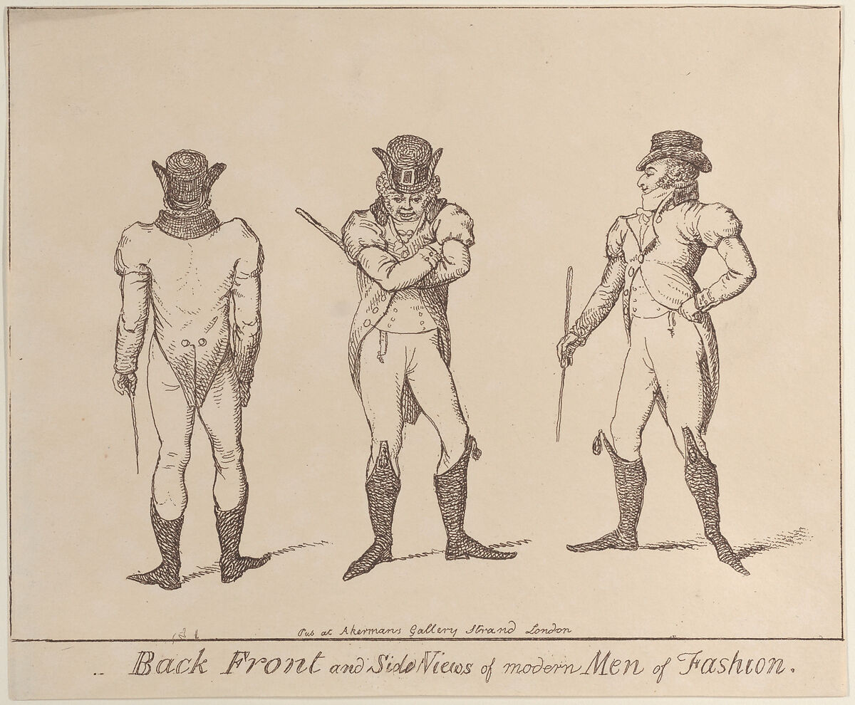 - Title: Back, Front, and Side Views of Modern Men of Fashion: Fashions a little before 1800
