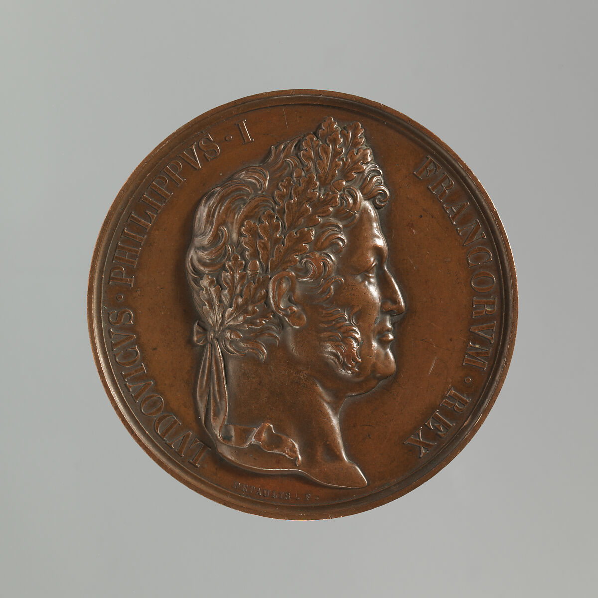 This medal was undoubtedly commissioned by Louise Philippe himself to celebrate the Restoration of the Monarchy following the French Revolution of 1830. The title expressed on the medal, “King of the French,” rather than King of France, signifies his election by his subjects in accordance with the new constitutional laws. As with Napoleon in the early years of the nineteenth century, Louis Philippe was adept at using the art of the medal to promote Royalist propaganda during his July Monarchy. Over twenty-eight effigies of him are known to exist, underscoring his interest in disseminating the power of his reign.