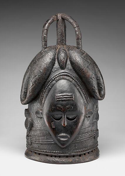 This helmet mask evokes idealized feminine beauty and, like other masks of this type known as sowei or ndoli jowei developed in the region, would have been worn by leaders of the all-female society during the initiation of young women into adulthood. Within Mende and Sherbro culture in Sierra Leone, or Bassa and Vai cultures from neighboring Liberia, helmet masks are carved with symbolic features that endow wearers with spiritual power. Senior members of the Sande initiation society may have worn this work in performances.