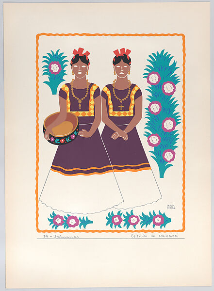 - Title: Two Tehuana women from the state of Oaxaca, plate 14 from "Trajes Regionales Mexicanos" (Regional Mexican Dress)