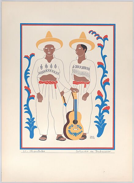 - Title: Two musicians (Chontal Maya) from the state of Tabasco, plate 21 from "Trajes Regionales Mexicanos" (Regional Mexican Dress)