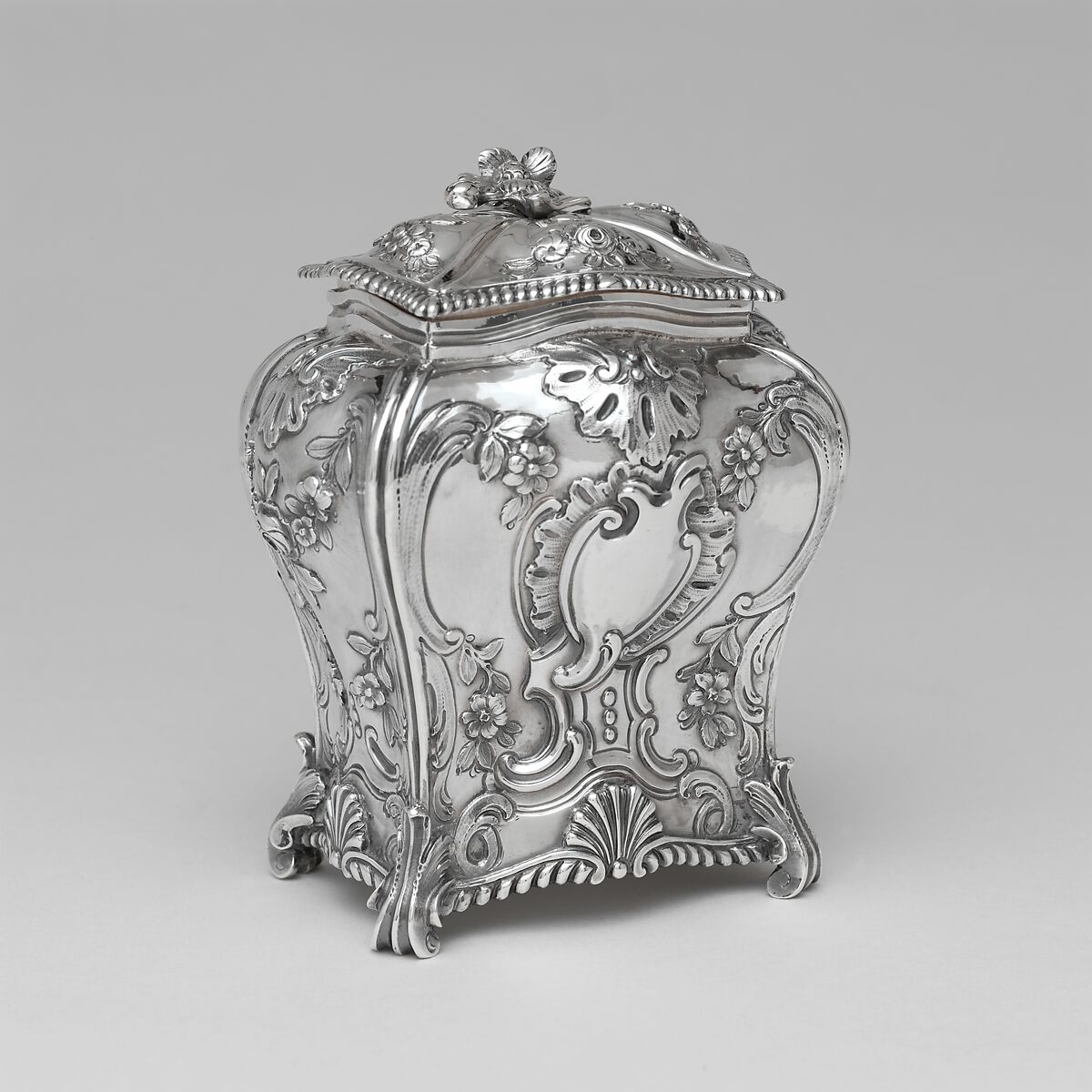 This tea caddy was part of Judith Crommelin Verplanck’s trousseau. It is one of several London-made silver tea wares owned by Judith and her merchant husband, Samuel Verplanck.