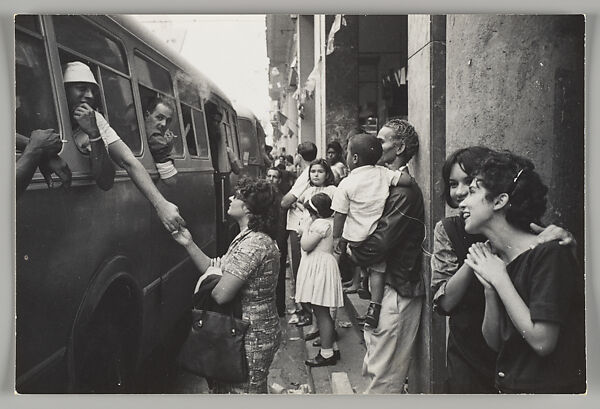 When Paolo Gasparini came to Havana in 1961, he had to rethink his approach to photography. After Fidel Castro's siezure of power, “the speed of social and cultural events in Cuba made me change my camera,” he later explained. Swapping his larger-format reflex cameras for a nimble 35mm, Gasparini distanced himself from the spare, architectural compositions of his early career and turned his lens to the streets of a city rollicking with post-revolutionary fervor. Here, a crowd of commuters spills onto a Havana street, where buses queue into the distance. The congestion speaks to the historic city’s growing pains at a moment of rapid urbanization. Reaching out of windows and massing around a modern façade, young Cubans test the limits of city infrastructure.