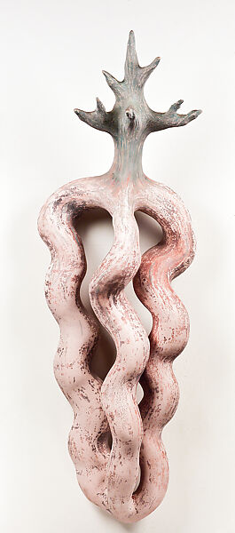 Deep Roots presents palpable references to both human anatomy and the natural world, such as fertility, growth, and the interconnectedness of life. Carpenter’s process of adding clay coils to a helix-like infrastructure enabled her to create large-scale undulating forms in high relief (see also MMA 2020.296.16).