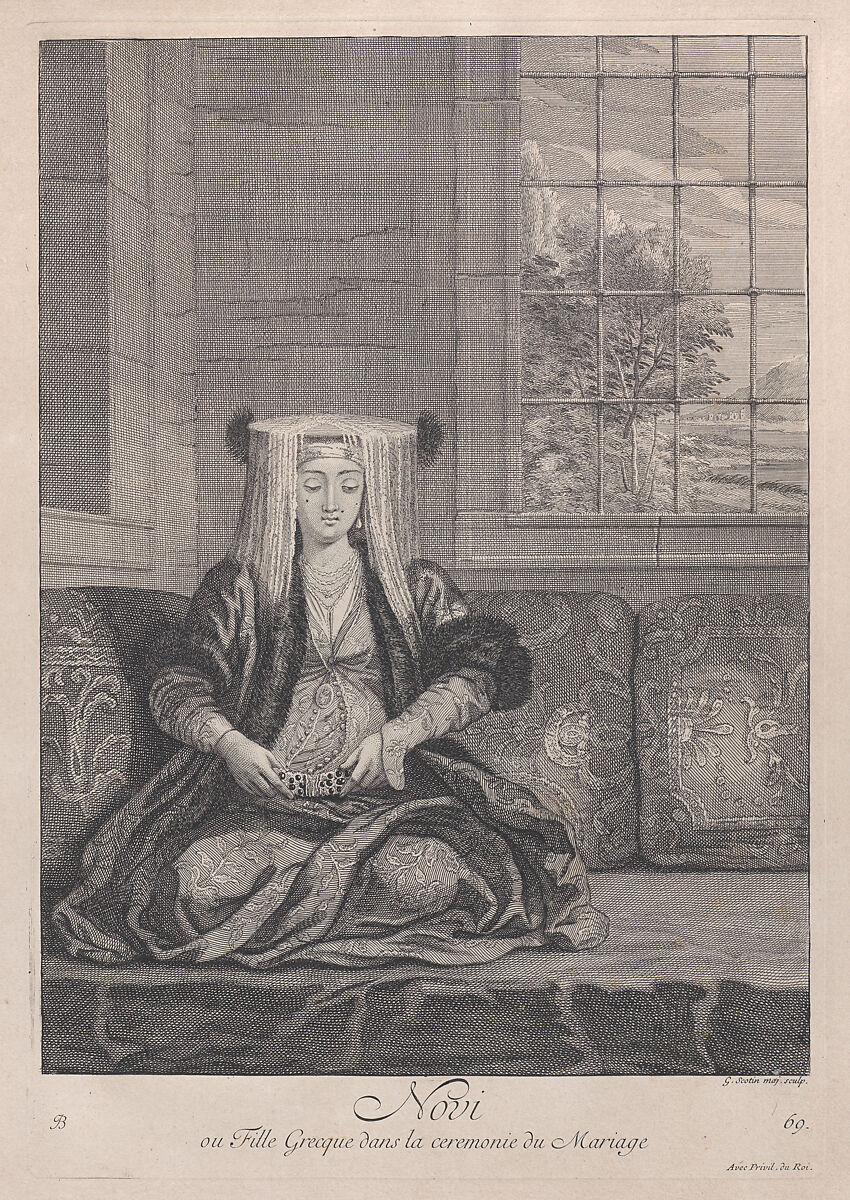 - Title: Novi, ou Fille Grecque dans la ceremonie du Mariage, plate 69 from "Recueil de cent estampes représentent differentes nations du Levant"