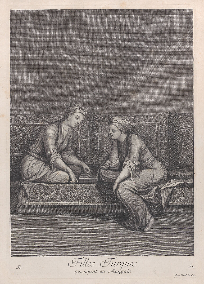 Filles Turques, qui jouent au Mangala, plate 53 from "Recueil de cent estampes représentent differentes nations du Levant"