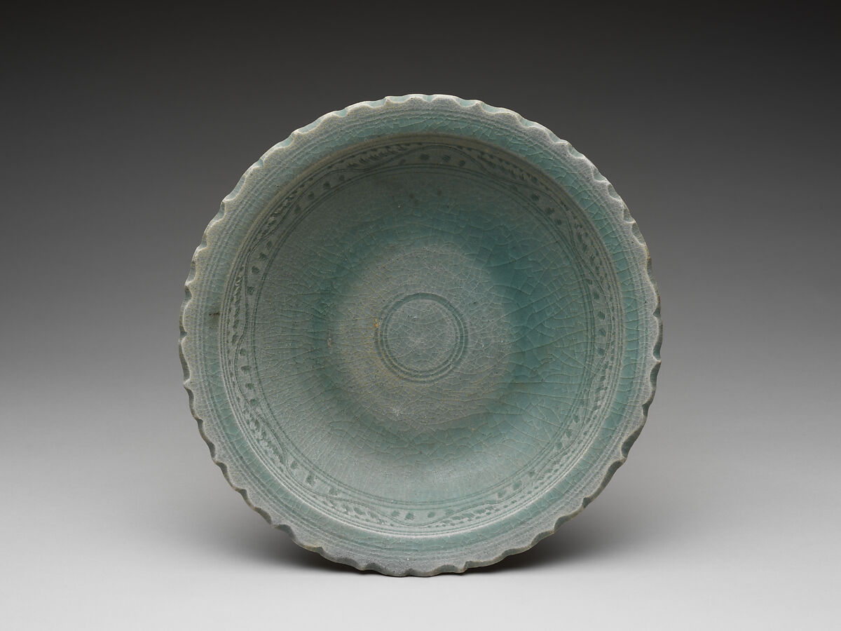 - Title: Dish green glazed with foliate rim