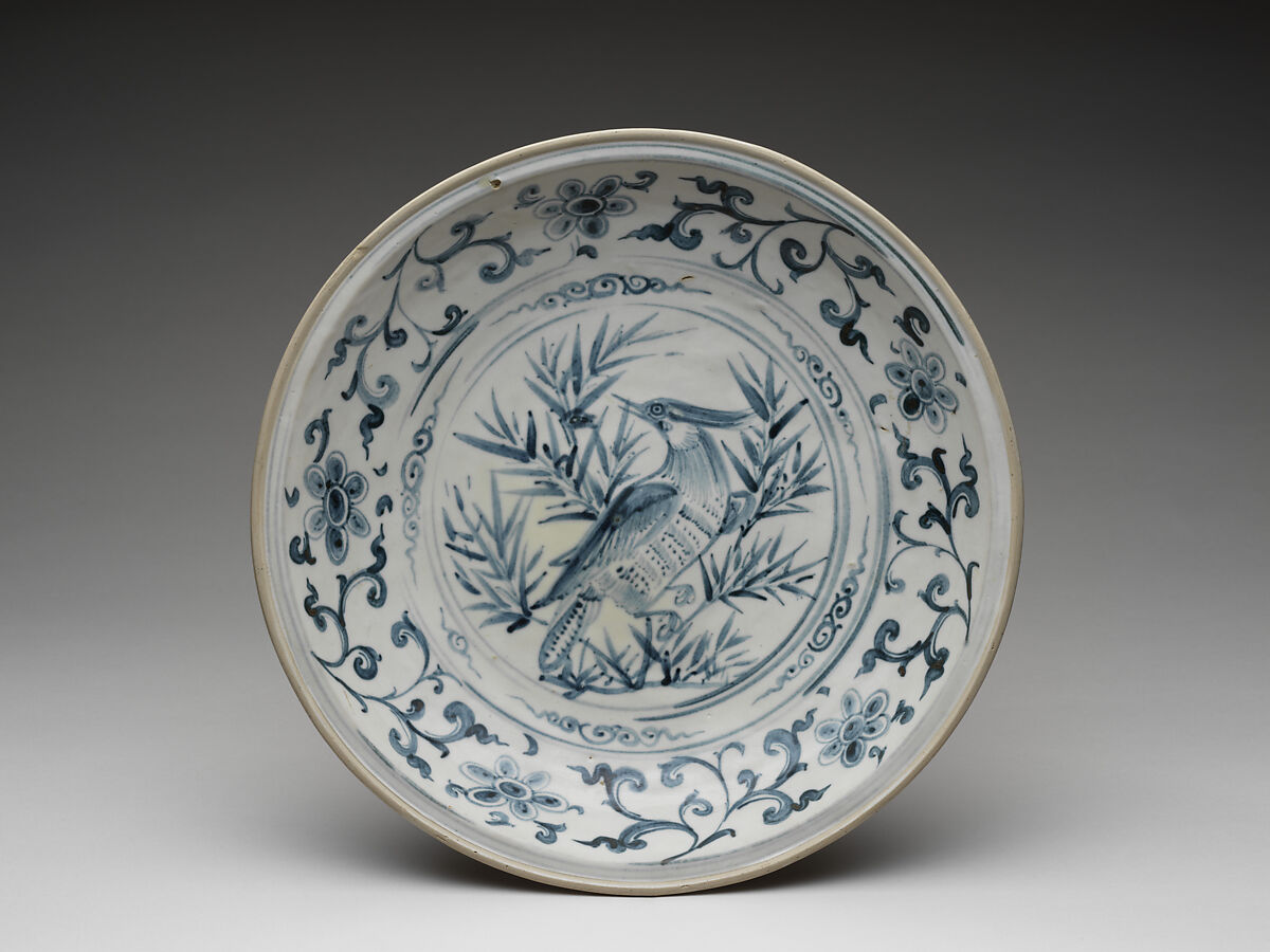 - Title: Dish with bird amid bamboo design and foliate meander on cavetto