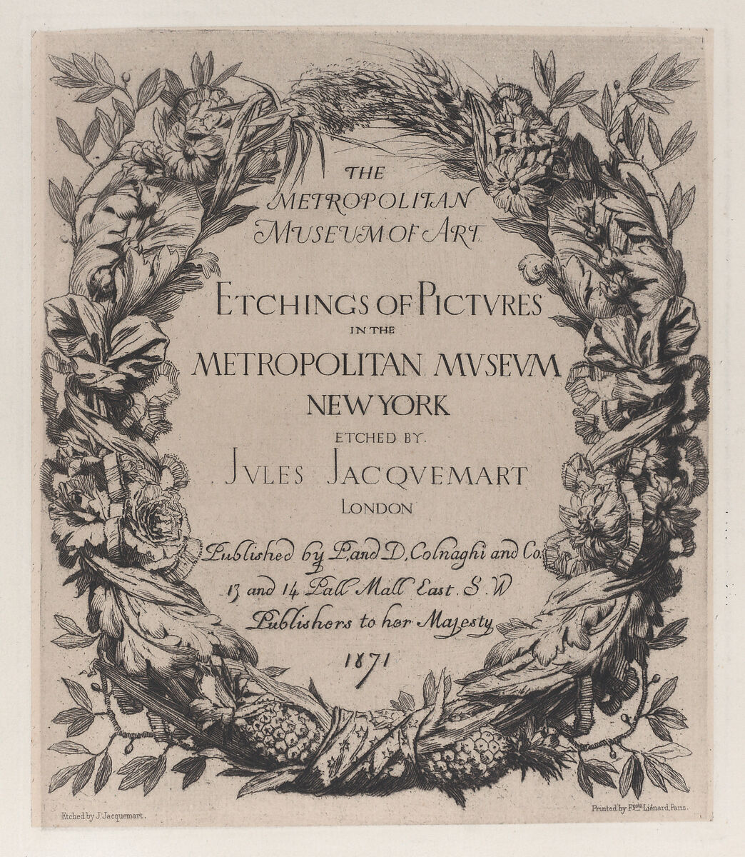 - Title: Title page, from "Etchings of Pictures in the Metropolitan Museum New York"
