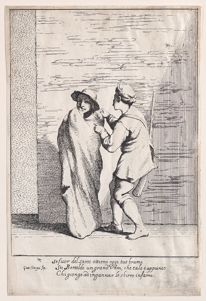 - Title: Plate 4: Bertoldo stuffed in a sack, from "Bertoldo, Bertoldino, and Cacasenno"