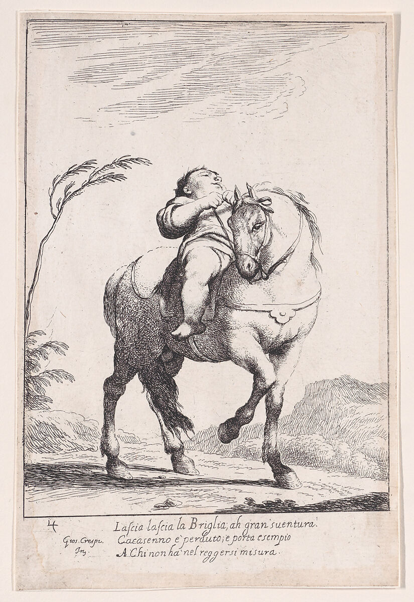 - Title: Plate 18: Cacasenno on horseback, from "Bertoldo, Bertoldino, and Cacasenno"