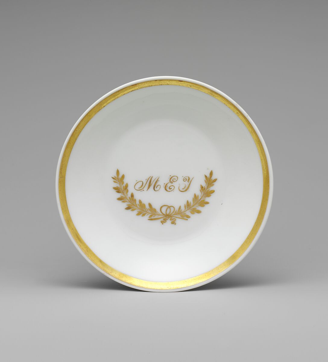 This object belongs to a coffee service bearing the initials of Mary Earp Tucker, wife of Thomas Tucker, the manager of the Tucker Porcelain Works.