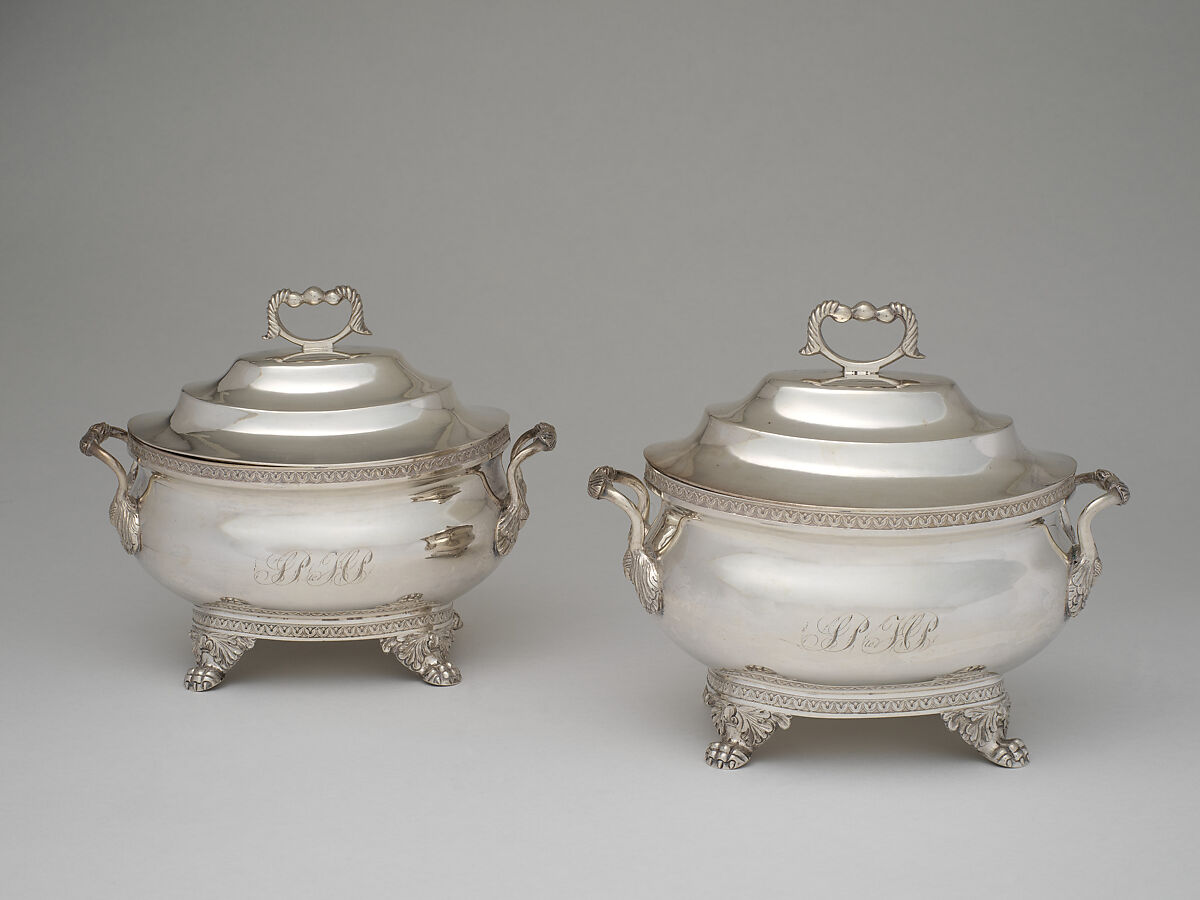 This pair of sauce tureens exemplifies the elegant simplicity and sophistication of early nineteenth-century American silver. The maker, Edward Lownes, trained under his uncle, the silversmith Joseph Lownes. He would become one of the small group of Philadelphia silversmiths who manufactured objects of superb quality during the first third of the nineteenth century.