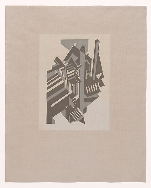 In a posthumous tribute to Wadsworth, Wyndham Lewis, the artist, writer, and a founder of Vorticism, described an interwar visit the two took to Yorkshire. Lewis wrote that, from their vantage point at the top of a hill, Wadsworth pointed to the town of Halifax below: "We gazed down into its blackened labyrinth. I could see he was proud of it. ‘It’s like Hell, isn’t it?’ he said enthusiastically." Bradford, depicted here, is about five miles from Cleckheaton, where Wadsworth grew up and where his family’s mill was located. The sharpness of the image reflects the precision his learned from his studies of machine draftsmanship in Munich. As in other works, Wadsworth adopted an elevated, almost aerial view, which, combined with the reductive angular forms and the rigor of the design, creates a nearly abstract image.