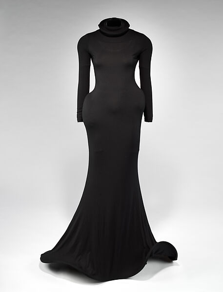 In 1986, British designer Georgina Godley came out with her Lumps and Bumps collection, inspired by a study of African fertility dolls. Godley reacted against the muscular and hard ideal body propagated by 1980s feminism, by inserting padded underwear overlaid with a jersey stretch dress. Her surreal dilation of women's curves went against the two fashion images of the decade, the figure-boosting, stretch athletic wear and the more shapeless avant-garde gowns. She wanted the garments to be inhabited by the female form as an expression of fecundity and power. To construct the collection, Godley started from Barbie dolls, which she saw as a "distortion of the female form", and modelled clay on them until they felt right. This sculptural approach led her to develop padded shapes, which could be attached to the Lycra dress. Godley's background in fine arts infuses her designs with an art historical sensibility, offering an artistic “third option” for those women who want to upend the binary.