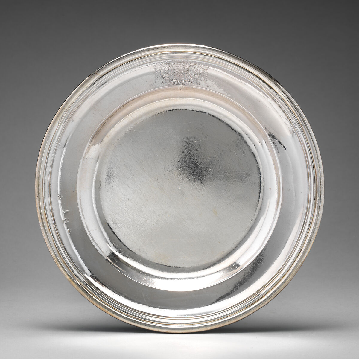 Set of four circular dinner plates with English arms, London 1715 with maker's mark of Richard Bayley, which are part of a larger set, of which The Met was given twelve by Mrs Charles Wrightsman in 2012 (2012.205.17). In the eighteenth century, dinner plates were often supplied in sets of 36 – enough to serve three courses to a table of twelve.