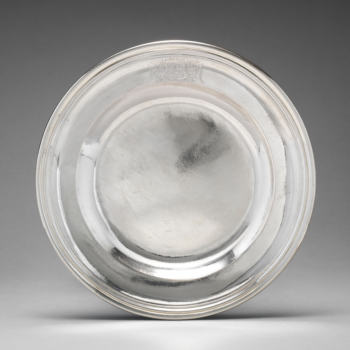 Set of four circular dinner plates with English arms, London 1715 with maker's mark of Richard Bayley, which are part of a larger set, of which The Met was given twelve by Mrs Charles Wrightsman in 2012 (2012.205.17). In the eighteenth century, dinner plates were often supplied in sets of 36 – enough to serve three courses to a table of twelve.