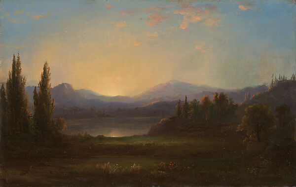 During the initial years of the US Civil War (1861–65), the African American painter Duncanson worked in Cincinnati and traveled frequently on sketching tours. Separated from the Confederate state of Kentucky only by the Ohio River, Duncanson would have been sensitive to the tense and hazardous conditions for Black Cincinnatians; he moved to Canada for an extended residency in 1863. This oil sketch likely depicts the Canadian Lac-Supérieur located in the Laurentian Mountains. Duncanson exhibited his paintings in Canada, where he found a receptive audience and helped launch a regional landscape movement, before returning to the United States in 1866.