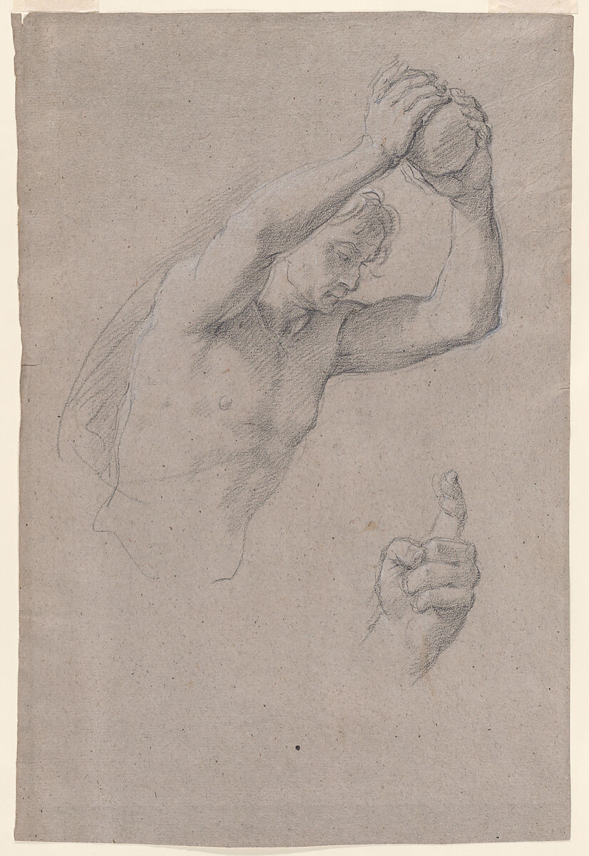 - Title: Double-sided sheet of Figural Studies: (recto) Studies of a Young Man Holding a Stone Seen in Half-length; (verso) Seated Young Man Seen in Three-quarter View from Behind, Facing Right.