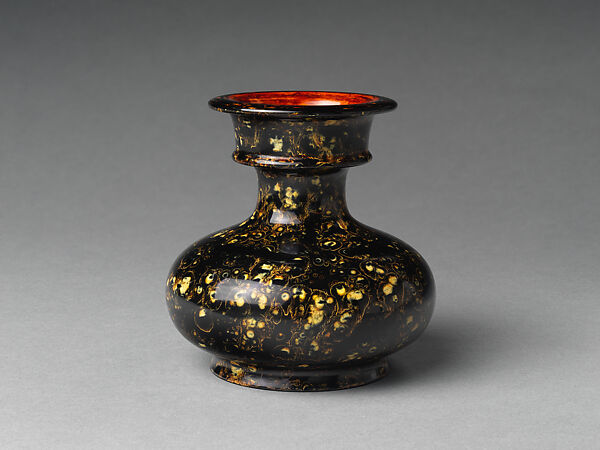 The vase is inspired by the form of some Tang dynasty (618–907) ceramics and bronzes—hence its name, “Tang Flow.” The lacquer surface not only mimics the flowing effect of ceramic glaze, but also subtly reflects the mottled appearance of bronze patina. This effect is the artist’s own invention.