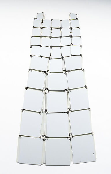 Paco Rabanne was a game-changing fashion designer who set a new course for fashion with his groundbreaking 1966–67 couture collection “Twelve Unwearable Dresses” made from industrial and household materials. With its allusion to chain mail, this dress establishes Rabanne's practice of citing historical elements fused with a Space-Age aesthetic. The innovative construction and unconventional use of novel postwar industrial materials epitomize the exploratory and experimental sensibility of Rabanne’s avant-garde fashion.
