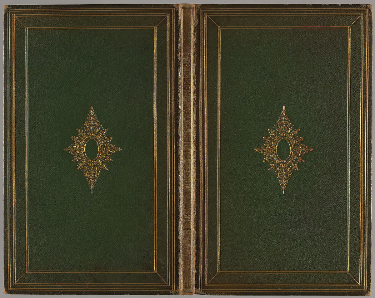 Green morocco binding, covers are gilt with triple panel design with the frames tooled with a double line fillet, in the center of the inner panel is a gilt ornamental design, title stamped in gold on spine, gilt inner dentelle, all edges gilt, signed "Bound by Hayday"
