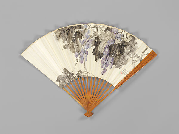 - Medium: Folding fan; ink and color on paper with carved bamboo frame
