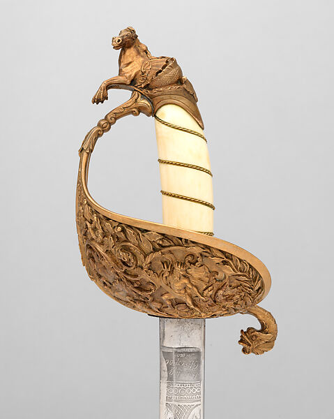 This work of art is currently on loan to the museum.The beautifully conceived hilt of this sword was previously unrecognized as made from models created by the artist John Quincy Adams Ward (1830–1910) and appears to be the only complete hilt of this design to survive. Early in his career, while establishing his reputation for the small and large-scale figural works that made him the most famous American sculptor of the Civil War era, Ward created models for a variety of decorative items and executed at least five important commissions for the design of presentation arms. These include a sword given to Ulysses S. Grant (Smithsonian Institution); a pair of pistols given by President Abraham Lincoln to the governor of Adrianople, Turkey (FDR Presidential Library and Museum, Hyde Park, NY); two swords presented by Lincoln to the King of Thailand as diplomatic gifts (present whereabouts unknown), and a naval presentation sword awarded to Admiral Andrew Hull Foote in 1863 (present whereabouts unknown).