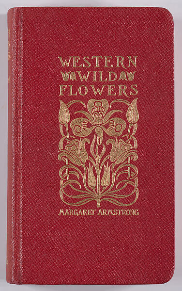 "Unsigned Margaret Armstrong binding design of gold stylized wild flowers on red morocco leather grained flexible cloth boards with orange pigmented edges. Includes 500 illustrations in black and white and 48 color illustrations by Miss Armstrong. Conceived, researched, written (Thornber acted as a consulting author) and illustrated by Miss Armstrong, The Field Book of Western Wild Flowers was the first field guide to describe the wildflowers of the states west of the Rocky Mountains, and includes new species Miss Armstrong identified while conducting the extensive research required for the text and illustrations. Miss Armstrong's historic journey with several friends as the first white women to make the descent to the bottom of the Grand Canyon was made with the research for this book as a primary goal. The present copy is one of the earliest printings as it lists The Knickerbocker Press below C.P. Putnam's Son's on the title page, and has the Knickerbocker Press colophon on the verso of the title page (see TBR 10:5); these two points were removed in later printings. Exceptionally scarce in either the smooth flexible boards or in the present faux leather. GE10." -- Austin Abbey Rare Books