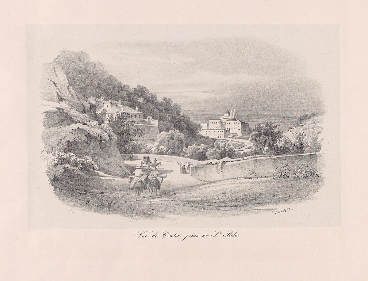 This is from a collection of picturesque views of Sintra by the lithographer and sometime painter Clementine de Brelaz. She was born in Lisbon in 1811, and migrated to Switzerland, as a Protestant convert. According to Carl Brun (Schweizerisches Künstler Lexikon), Brelaz was taught in Geneva by the Swiss landscape painter Alexandre Calame (1810–64), presumably during the 1830s. The series of plates are from a set of 18 with a title ‘Coquis de Cintra: Dessines d’apres et lithographies par CNE B.’, Lisbon, Litografia de Manuel Luis, 1840.
