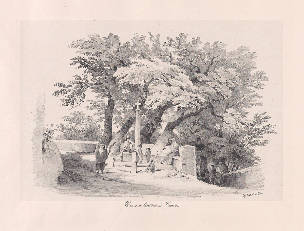This is from a collection of picturesque views of Sintra by the lithographer and sometime painter Clementine de Brelaz. She was born in Lisbon in 1811, and migrated to Switzerland, as a Protestant convert. According to Carl Brun (Schweizerisches Künstler Lexikon), Brelaz was taught in Geneva by the Swiss landscape painter Alexandre Calame (1810–64), presumably during the 1830s. The series of plates are from a set of 18 with a title ‘Coquis de Cintra: Dessines d’apres et lithographies par CNE B.’, Lisbon, Litografia de Manuel Luis, 1840.