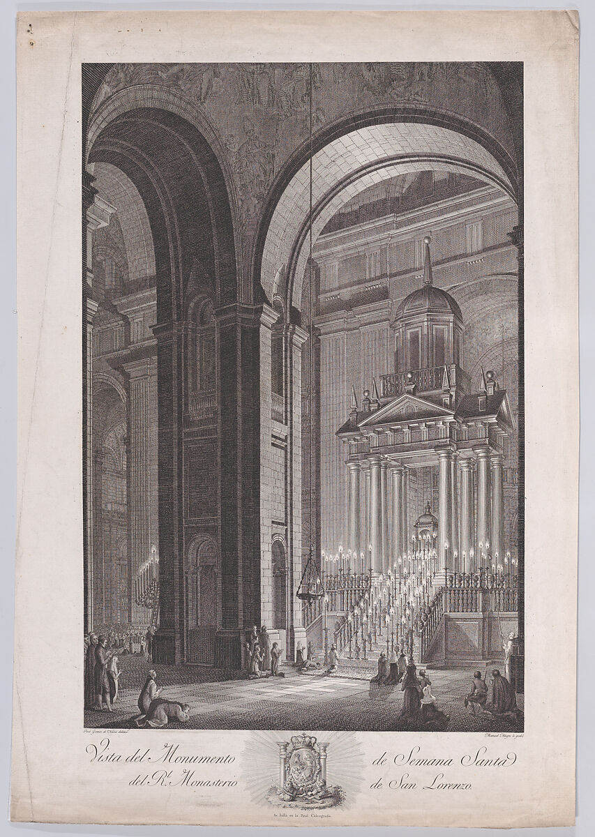 - Title: The monument raised for Holy Week (Semana Santa) in the Church of the monastery of El Escorial, from "Views of El Escorial"