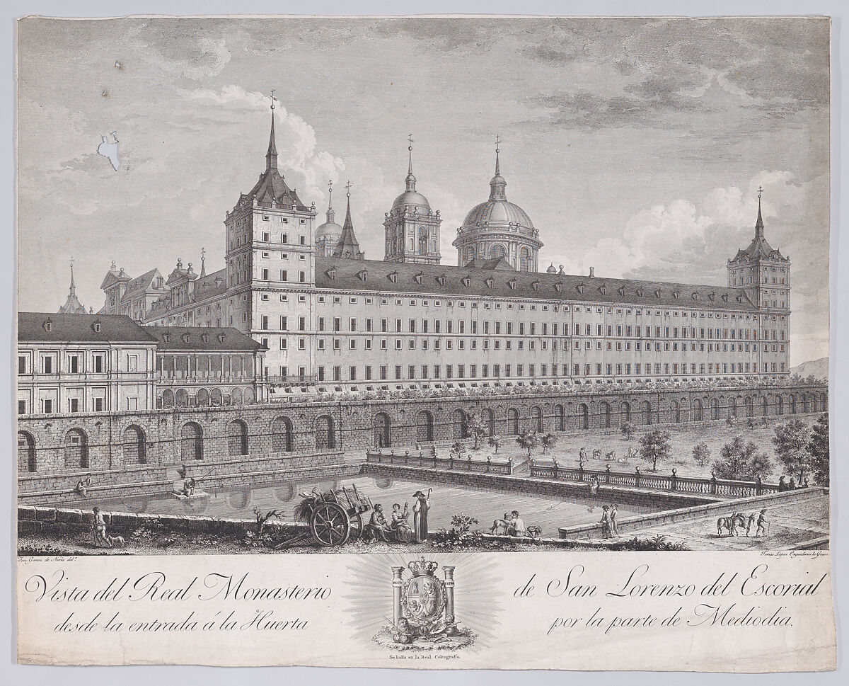 - Title: View of the side of the monastery of El Escorial with the garden in the foreground, from "Views of El Escorial"