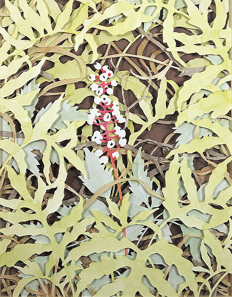 - Medium: Cut papers, plexiglass, and watercolor on board