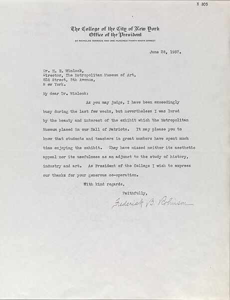 - Credit Line: Office of the Secretary Records, The Metropolitan Museum of Art Archives