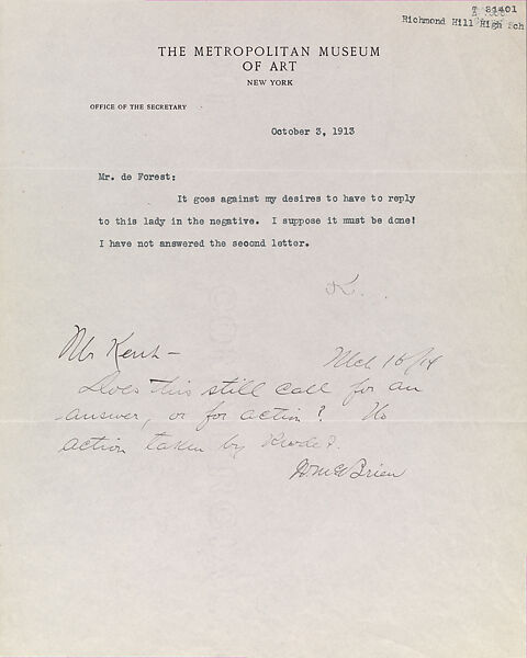 - Credit Line: Office of the Secretary Records, The Metropolitan Museum of Art Archives