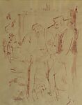 Kuhn was a figurative American painter of respectable merit throughout the early twentieth century, though his greatest impact likely had to do with his role co-organizing the infamous Armory Show, which opened in New York in 1913 and introduced thousands of visitors to a wide array of modern European and American art. As a painter, Kuhn is best remembered for his often arresting portraits of circus performers. The present drawing, which shows two men wearing wide-brimmed hats while standing and conversing along a street, is distinct for its presumed Mexican subject and prompts questions around the artist’s travels and his engagement with Mexican culture.