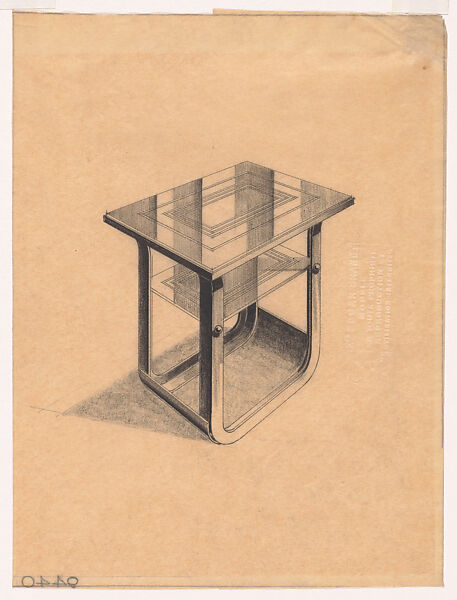 - Title: Presentation Drawing for a Side Table with a Wrought-Iron Base and a Glass (?) Top